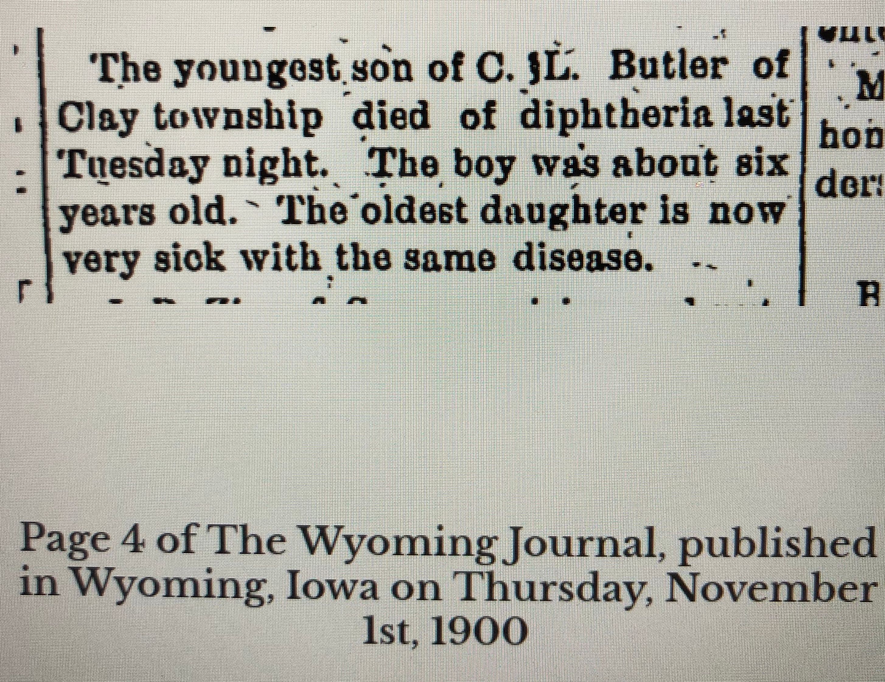 Died of diptheria, 6 years old.